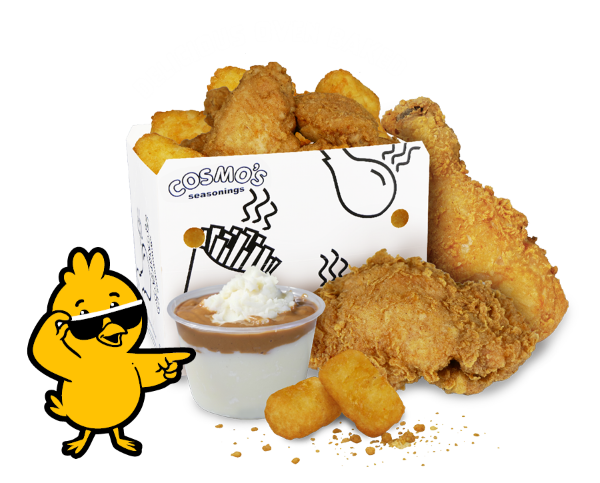 Our menu features everything from our generous big chicken bucket to convenient junior snack boxes and satisfying lunch meal deals. Combining perfectly seasoned chicken with crispy chips, ensuring there's something for every craving.